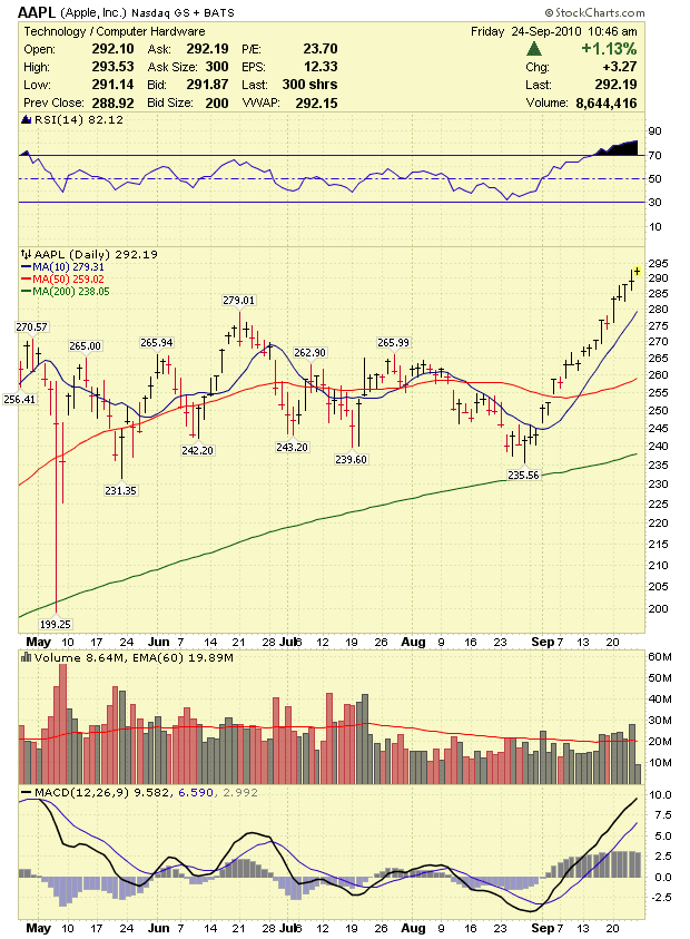 The following is technical analysis on Apple Inc (AAPL) stock for September 24, 2010