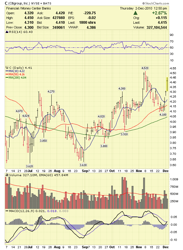 The following is Citigroup Inc. ( C ) stock technical analysis for December 2, 2010